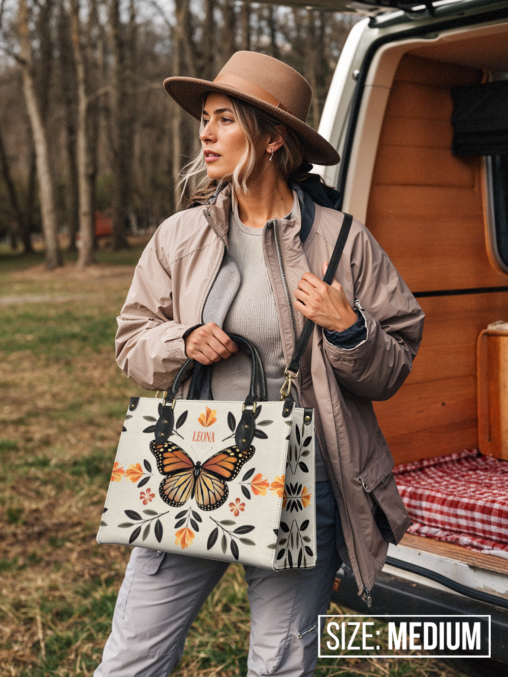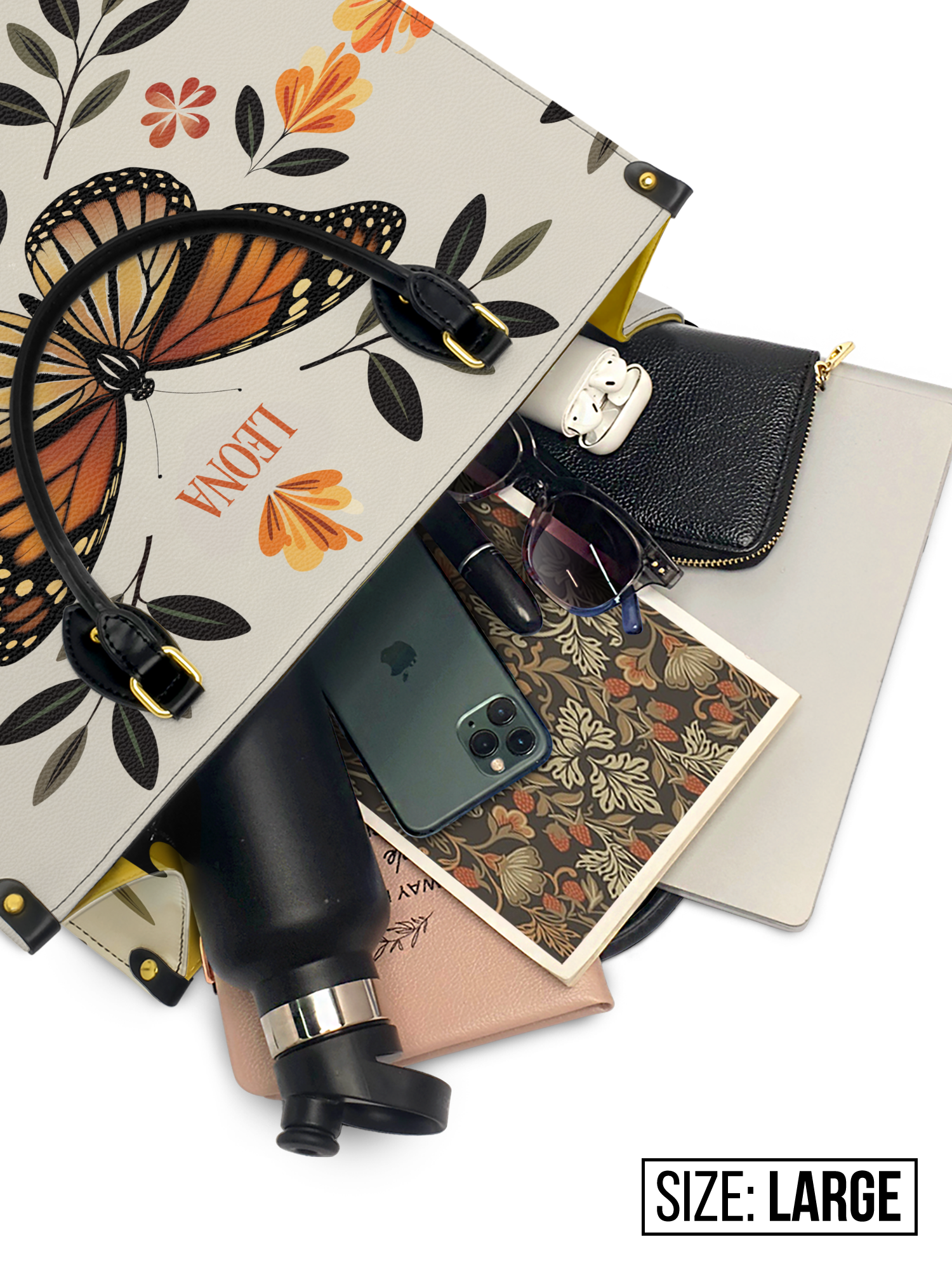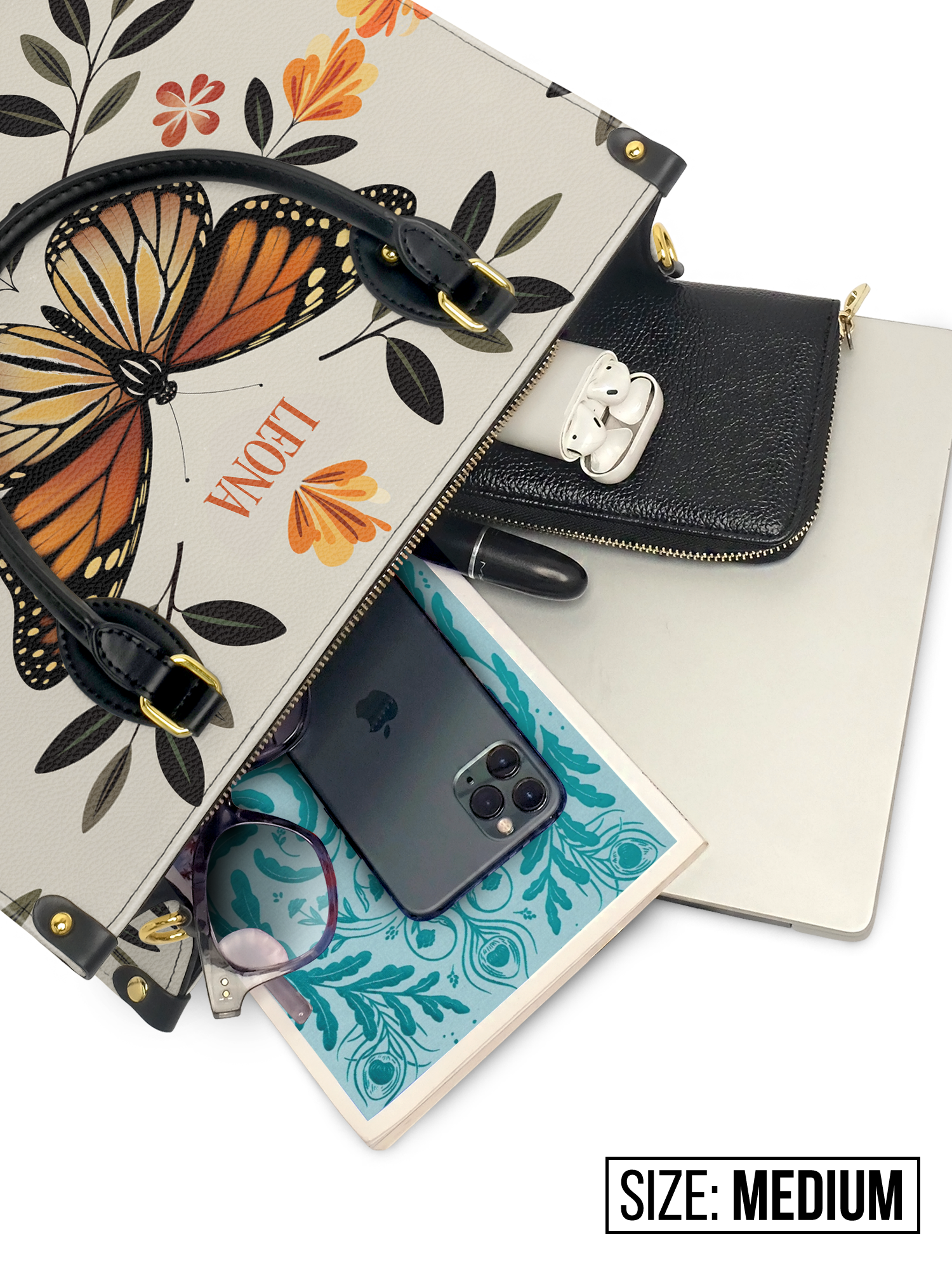 Minimalist Butterfly Flower HTRZ27127171HM Leather Bag